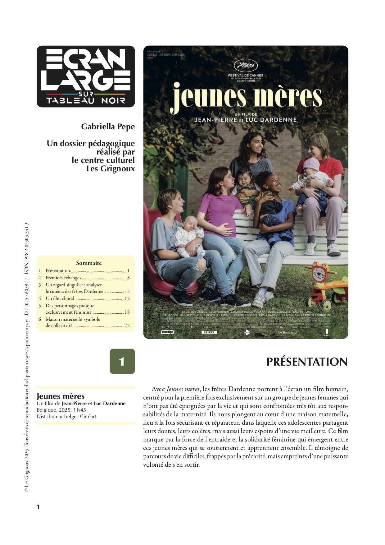 Avec Jeunes Mères, les frères Dardenne portent à l’écran un film humain, centré pour la première fois exclusivement sur un groupe de jeunes femmes qui n’ont pas été épargnées par la vie et qui sont confrontées très tôt aux responsabilités de la maternité. Ils nous plongent au cœur d’une maison maternelle, lieu à la fois sécurisant et réparateur, dans laquelle ces adolescentes partagent leurs doutes, leurs colères, mais aussi leurs espoirs d’une vie meilleure. Ce film marque par la force de l’entraide et la solidarité féminine qui émergent entre ces jeunes mères qui se soutiennent et apprennent ensemble. Il témoigne de parcours de vie difficiles, frappés par la précarité, mais empreints d’une puissante volonté de s’en sortir.