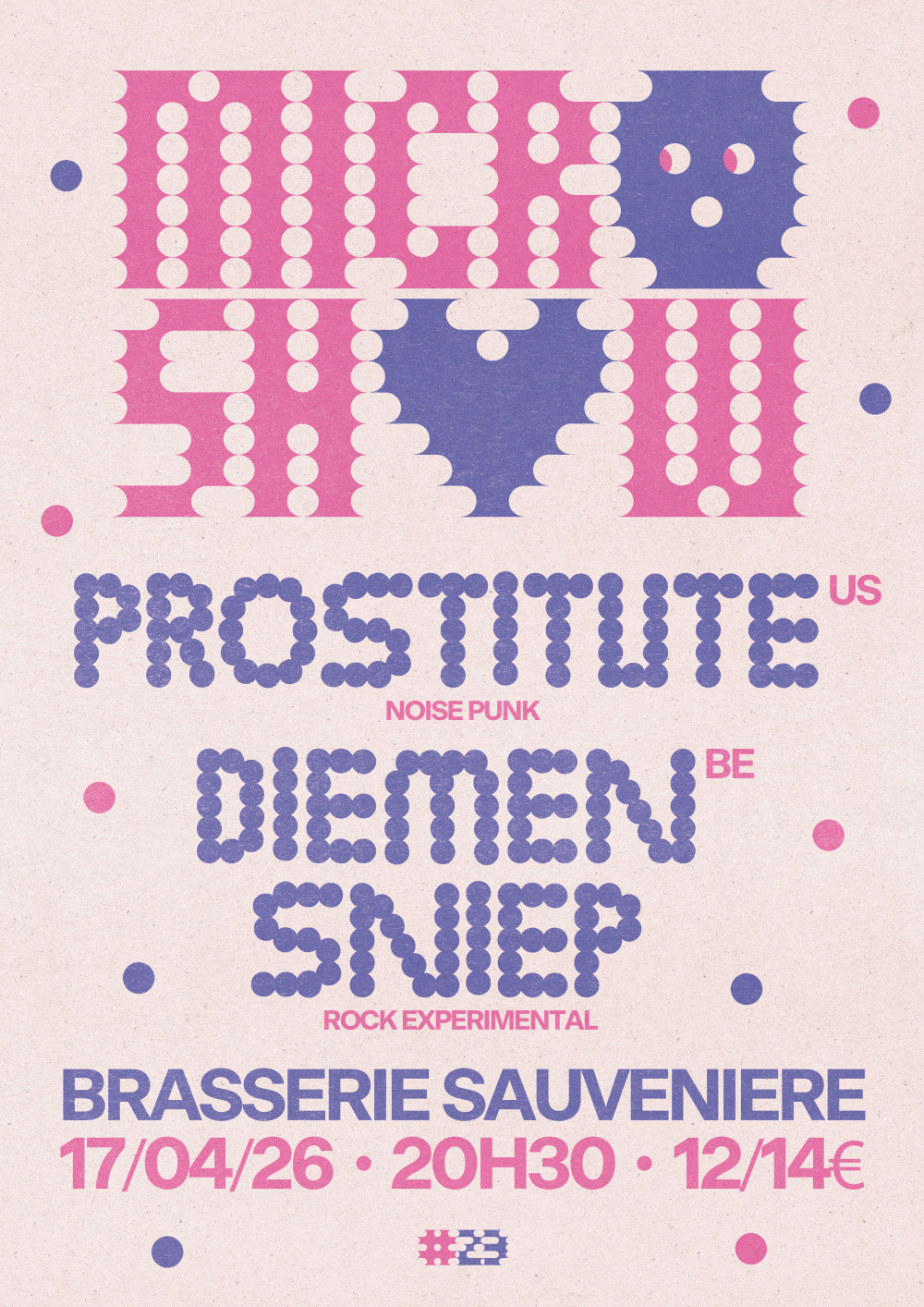Préventes : https://www.ticketux.be/r/microshow-prositute-diemensniep