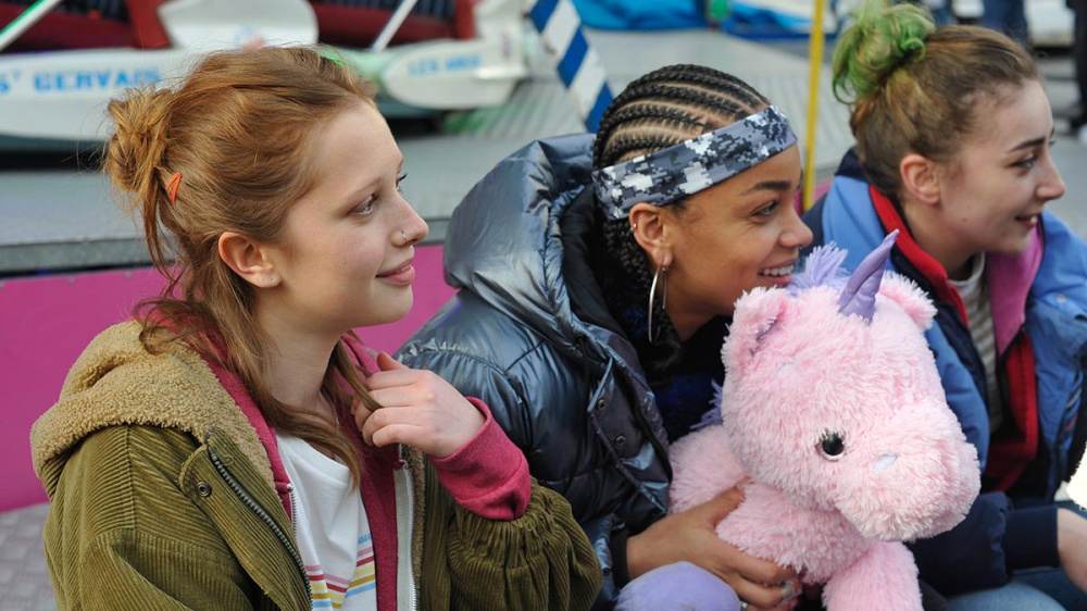 Les Filles du ciel brode avec une belle modernité sur le motif de la colère des jeunes filles. Mallorie, Jenna et Mona sont en colère contre la précarité qui les empêche de rêver grand, en colère contre les schémas qu’on veut leur imposer, en colère contre l’objectification de leurs corps. Des corps dont elles clament haut et fort l’appartenance, dont elles font des armes plutôt que des faiblesses. Héloïse, l’outsider, pose son regard, et par là même le nôtre sur cette petite communauté autogérée, faite d’entraide et de partage, rattrapée par le poids du dehors, mais aussi par les risques que peuvent entraîner l’appartenance à un groupe, son rôle protecteur mais aussi son rôle possiblement censeur. Le récit reste rugueux, observant avec tendresse la puissance de ces filles, sans en ignorer les aspérités, porté par les performances désarmantes de naturel des quatre jeunes comédiennes, qui trouvent là leurs premiers grands rôles.