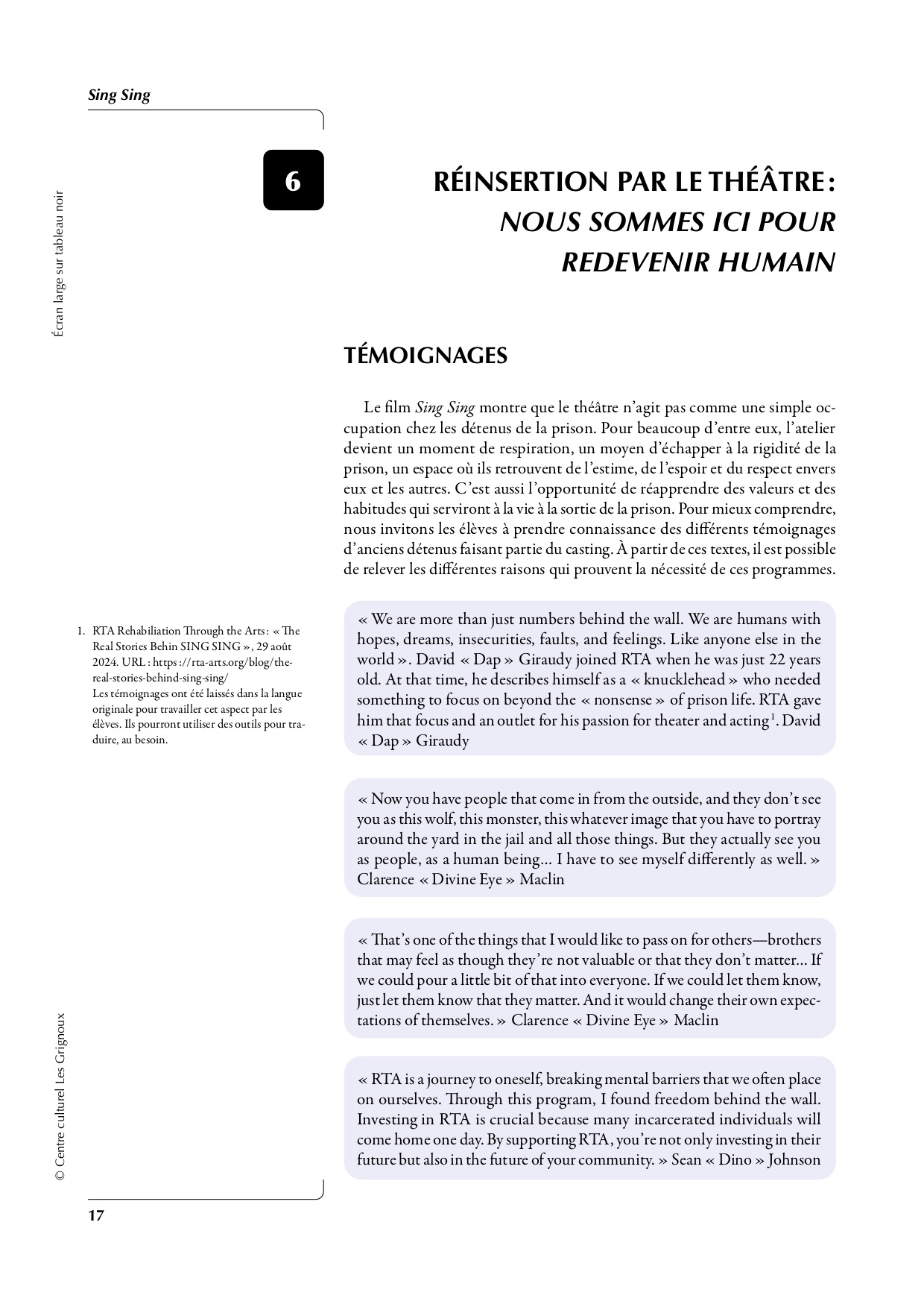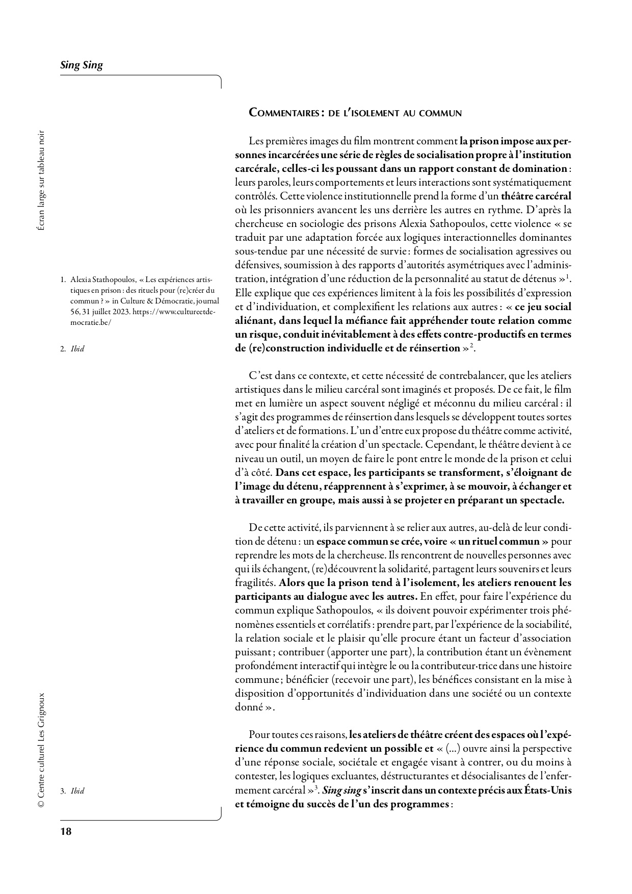 Extrait du dossier pédagogiqueréalisé par Les Grignoux et consacré àSing Singun film de Greg KwedarEtats-Unis, 2024, 1h47